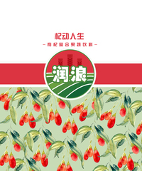 润浪系列包装设计主要产品为润浪金银花开-金银花植物饮料、润浪启动人生-枸杞枸杞复合果蔬饮料、润浪三生有杏-杏果汁饮料,产品标志设计以波浪线条图案、麦穗及“润浪”文字为构成要素进行设计,寓意纯天然、绿色、健康的产品特色,系列包装设计颜色选用果实及植物本身的颜色,分别为杏黄色、杞红色、草绿色为主要的标准色彩,色彩搭配和谐统一,装饰图案以杏果、枸杞和金银花植株为素材进行手绘图案的设计。材质选用纸盒包装和易拉罐包装,绿色环保,成本低, 整体设计风格和谐统一充满装饰感。