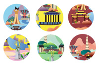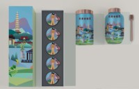 本作品设计构思主要围绕巨鹿县著名特色建筑物来进行设计,通过巨鹿小吕塞镇、石门、特色建筑、雕塑、巨鹿江南别院,巨鹿公园、金阁寺、旅发大会暨等特色建筑物,再结合巨鹿县自然生态山水元素与特色金银花组合来进行整体设计,本设计色调主要采用“红、黄、蓝、绿”四种色调礼盒满足不同消费者的需求,绿色代表自然,健康;红黄颜色代表希望、活力、力量。蓝色代表发展、进取。设计出巨鹿县独有的文创产品。