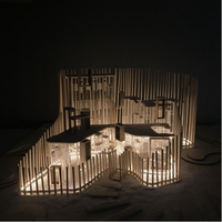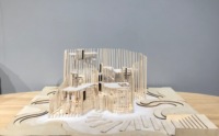 建筑模型的制作是一个比较复杂的过程,一个精美的建筑模型,从取材到雕琢再到上色,每一个步骤都是非常慎重且专业的。考虑到选材是建筑模型制作关键的第一步。在设计中采用亚克力和木板相结合的形式进行创作,建筑模型的窗户墙体使用亚克力进行雕刻,棚顶则使用木板。通过木条,木板,亚克力的相结合,形象的展现出本次设计主题——群落。星星点火,汇聚在一起,使楼与楼之间连接在一起。