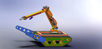随着社会经济的迅速发展,各种大型化工企业、隧道、地铁等不断增多,伴随而来的油品燃气、毒气泄漏爆炸、隧道、地铁坍塌等灾害以及自然灾害隐患不断增加,消防机器人作为特种机器人的一种,在灭火和抢险救援中愈来愈发挥着举足轻重的作用,事故中,救援人员身处危险环境,人身安全受到极大威胁,而消防机器人能代替救援人员进入易燃、易爆、有毒等环境,能更有效的解决并且保障了人身安全。 本作品“多功能消防机器人”主要由上部分机械臂和下部份履带底盘构成。主要用于排爆、灭火、搜救、侦察等领域。机械臂采用多自由度,保证了操作的灵活性。下臂长77cm,前臂长113cm,增加了大范围工作能力。轻量化设计,增加了操纵的灵活性,其机械抓手采用铝合金材料, 轻巧灵活,采用舵机控制,能够灵活稳定地完成对物体的抓取操作,易于安装拆卸替换。在采取了机械抓手的同时,同时安装有高压喷头为灭火装置,能够使机器人在救援中完成对物体抓取或运输的同时,能够具有灭火能力,增加机器人对不同救援条件的适应能力。灭火装置中的消防液采用内部储存和输送的方式,极大地减少了空间,增加了机械臂工作的灵活性,机械臂内部采用镂空的设计用来储存液体,由旁边的气泵装置把液体压到喷头,实现灭火功能。机器人履带底盘采用加厚硬质铝合金制作而成,增强了对恶劣环境的适应能力,高底盘增强对不同路况的适应,加装的前摆臂增强了越障能力,相比于市面上大多数的救援机器人本产品底盘加装了前摆臂,通过电机控制转动,能够实现对高障碍的翻越,增强了对灾难区域路况的适应能力,可以通过调整单片机的控制实现多种动作,用来适应不同道路障碍环境的需要。