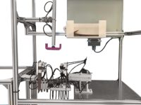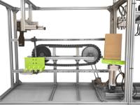 设计了一款能够实现自助点餐、自动打包的汉堡售卖一体机。该项目主要用于解决在用餐的高峰期汉堡打包效率低下的问题,近两年全球受疫情的影响,使人们对食品安全更加重视,因此对全自动化包装的需求激增。客户可以通过店内的自助点餐机或通过扫描二维码在我们的小程序里点餐下单,客户下完单之后通过我们的机器将汉堡进行喷码打包,最后存放在平台上,客户可以根据自己的订单编号取走。该机器采用独特的包装袋定向输送机构,辅以负压装置配合完成取袋、开袋部分,后通过传送带将填充物传送到纸袋中,完成装袋部分,利用链条滑块导轨的定向移动,实现纸袋的运输,进入封袋喷码过程。采用牛皮纸袋,节能环保。经测试,该机器打包效率已达到240袋/h。