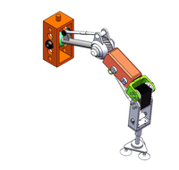 基于三角步态原理效仿了生物界中蜘蛛的爬行方式并对其分析,通过电池供电来驱动该机器人的爬行,采用双四足步态通过每个伺服电机来驱动腿部克兰连杆机构,将简单的圆周运动转化为脚部的仿生运动,既满足了速度要求,又可以保证其稳定性。利用两直流电机的差速进行调节从而实现转弯操作,八足的设计极大地增加了行进过程中的稳定性,其中中间四足设置为可替换辅助足,如吸盘腿、伸缩腿、倒钩式腿等,可吸附、可高跨度、可加持悬挂等多功能,使其可以适应于多种地形,加装一个小型多功能红外线摄像头,可发射红外线激光测距,利用热成像可以在黑暗的环境里清晰成像,利用图像模块将摄像头与手机等设备所连接,来获得多重多样的信息,实现其多功能性。