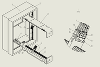 对于垃圾袋的装置,我们考察了市面上主要的几种形式,发现其中存在巨大的局限性,现有的家庭智能垃圾桶的垃圾袋需要一个适配盒,每个适配盒只能装大约四十到六十个垃圾袋,用完后需要重新购买一个适配盒,这种结构比较浪费材料。针对此问题,我们设计出一种可以循环使用的适配盒,盒底采用半开放的弹簧结构,利用机械手丝杠的配合机构将其拉至内部箱体底部,内层箱体顶部的丝杠热封机构将拉伸的垃圾袋熔断并封口,之后再由机械手将其拉至底部,实现机械结构上的多次循环。