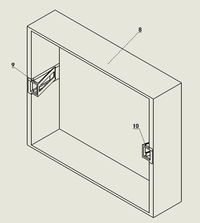 垃圾箱的总体结构包括总箱体(内外两层结构),垃圾袋盒,屏幕,太阳能供电模块,电机驱动的丝杠热风装置,机械手,舵机,声控芯片与人体热感应装置等,另外也可以包括一些其他的公共设施组件:照明灯,酒精喷雾消毒器,紫外线杀菌处理装置等。