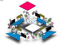该机器鱼的设计理念主要通过舵机多方位控制其运动方向和电机驱动螺旋桨和齿轮来实现运动,在该设计中装配了八个相同型号的电机,其中四个电机装配螺旋桨在机身上方四个部位,其余四个电机装配齿轮在机身内部,在骨架上装配四个齿轮由内部电机装配齿轮来带动骨架的煽动,在其中骨架的转动方式是通过轴承实现的。在该产品中应用到仿生学理念去设计的,该设计的工作原理是通过电机和舵机分别实现的;其中电机带动螺旋桨进行推进,通过舵机实现方向和各种运动。电机驱动骨架上的齿轮使骨架进行浮动。从而使机器鱼在水下进行活动。