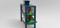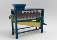 脱粒机的整体结构主要由脱粒装置、筛分装置、动力传动装置、进出料部分以及机架和外壳组成。脱粒装置主要由脱粒辊和栅格凹板组成;筛分装置主要由下滑板和除杂风扇组成;动力传动装置主要由电动机、主轴、带轮组成,电动机带动皮带轮传递动力给主轴,除杂风扇通过带传动得到动力。工作原理是将去皮的玉米从顶部的进料口放入脱粒区,玉米通过脱粒滚筒的高速旋转以及和栅格凹板的摩擦进行脱粒。玉米芯则通过脱粒辊提供的螺旋推力和导向作用通过出料口被排出。玉米籽粒以及脱粒过程中产生的碎芯会通过栅格凹板掉落到下滑板上,杂物经过下滑板和风扇的双重作用下得以大部分清除,干净的玉米粒则通过下滑板排出。