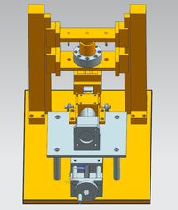 本团队重点研发一台往复式摩擦磨损试验机。试验机主要由动力系统、传动系统、加载系统、测控系统等部分组成。试验机通过龙门丝杠连接并拉紧钢丝绳来带动下压板和弹簧压板从而对弹簧产生挤压来提供所需实验力,通过对步进电机的编程产生往复运动,轴在套筒的配合下带动微型拉力传感器运动。之后将试块固定在油槽中与钢球夹具中的钢球形成摩擦副,产生摩擦力。通过数据处理转换可得到摩擦系数等数据。