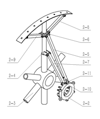 四 、直径、曲率调节组件结构设计巧妙,能够联动实现自身变径效果,可在基本直径与最大直径之间任意调节,能够满足目前使用的大多数电抗器的径向尺寸要求,具有一定通用性。调节时,只需拧动两端的调节螺母,通过连杆的作用就可以时模具直径与外圆周面面曲率同时变化,变径效果稳定,保证了外圆周面的圆滑度,为生产高质量统--的产品提供有利基础。