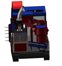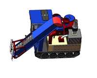 本项目为玉米秸秆焚烧、打包一体化机械。该收割机可以在一台机械上同时完成,收割,粉碎,打包等.极大的提高了收割效率,同时在很大程度上减少了对环境带来的污染。收割机通过内部电能源循环,相比传统机械极大的节约了能源同时也增大了动力系统。并且国内目前大多数秸秆回收机都以橡胶轮胎作为车轮,大大限制了工作环境。而我们的履带式轮胎大大减少了天气对路况的影响,使秸秆回收机可以在多种路况的田间作业。收割机将旋转刀片与传送带进行结合,实现秸秆的自动化收集,减少人力劳动,并且以电力驱动,减少燃油对环境的危害。收割机拥有的附加电风扇、座椅加热装置,提高多种天气下驾驶者驾驶舒适性,附加照明灯、可在夜晚提供亮光,提高了夜晚作业效率,附加护栏,保护秸秆回收机上人员作业安全。收割机的粉碎机,实现秸秆回收机的粉碎功能,使秸秆回收机更加多功能化,提高了秸秆回收效率。收割机上结合太阳能的装置,让秸秆回收机的电能储备有多种方式来实现,使秸秆回收机更加环保并且实惠。收割机采用搅拌电机,使膨润土与粉碎的秸秆充分融合;采用焚烧炉,实现粉碎的秸秆原地焚烧成草木灰,为下一年农耕做肥料,达到废物利用。因此,本项目具有广阔的市场前景和重要的现实意义。