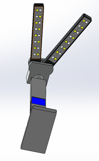 灯头与灯身采用球铰链连接,单身带有显示屏,装有蓝牙模块,显示时间 温度的消息,可设置闹钟。底座带有USB充电接口,无线充电,设有手机固定支座,在台灯的基础上,具有多功能人性化设计。