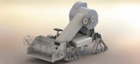 为了解决山地丘陵地区的小麦收割不便问题,团队深入了解山地丘陵地区的地形地貌后,设计研发了一种新型四驱履带式小麦收割机。整车车长约2米,宽约1.2米,高约1米。新型四驱履带式小麦收割机具有四个履带式车轮,发动机中置为四轮提供动力,具有驱动力大、地形适应性强等优点,能够在山地、丘陵、梯田等地形崎岖复杂条件下实现小麦收割作业。