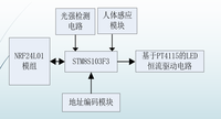 作为主机时控制器每隔一分钟读取下光强检测模块电路,当光线减弱至特定强度时,该模块会输出高电平,此时控制器的控制外围设备的程序被使能。使能之后当没有红外信号时,不断检测红外模块;当有红外信号被感应到时,红外感应模块会输出高电平,此时微处理器读取自身的ID,ID由拨码开关提供,拨码开关在控制器安装时会被设置成不同的组态,对应不同的地址,从一楼至N楼的控制器地址依次增加,差值为1。在读取自身ID之后,通过无线模块将自身的ID号发送出去,紧接着输出PWM信号驱动PT4115恒流模块LED逐渐点亮。如果点亮过程中有新的红外信号刺激,将以新的刺激时刻作为起点开始计时,在无新的红外信号刺激的情况下,30s后驱动PT4115逐渐熄灭大功率LED灯。