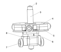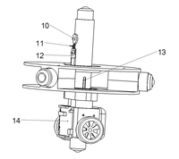 2.驱动装置由平衡盘,两个调速电机,轮胎组成。驱动轮胎在电机重力以及离合装置弹簧压力的作用下使其与球的内表面紧密接触,以降低滚轮与壳体间的滑动。从而实现转动传动,驱动球体滚动。