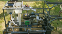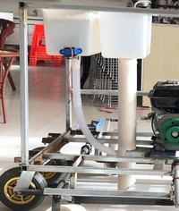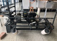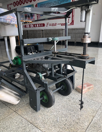 本机器是由一台170F型7.5马力汽油机带动的红薯栽苗机器,主要由动力部分、移动部分、侧翼部分、钻孔部分、投苗部分组成。钻头部分由自主设计的伞齿轮箱实现发动机的动力方向转换,带动打孔钻头旋转进行打孔和开槽,电动缸伸缩控制钻头的高低,从而控制打孔的深度。同时电机驱动推杆电机带动栽苗器完成进土、挖坑、栽苗、填土等动作,蜗轮蜗杆大扭矩电机实现精确距离移动,以达到高效率、自动化精确栽苗的效果。并且通过自动前进插秧和手机APP控制相结合实现了智能化、多功能化,大大解放了劳动力,这样种植速度快、效率高,不仅可以避免因新冠疫情管控无法实现人员密集型红薯种植作业导致错过种植最佳时机,而且大大增加了每亩红薯产量,提高劳动利用率,促进红薯种植机械化。