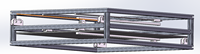 该车棚整体采用了箱式结构,拥有自动展开与收合,自动调整自身姿态以提高太阳能回收效率等功能,设计的可收缩太阳能板车棚是由晶体硅电池板、可收缩多自由度支撑杆、导轨支架、轴承、主轴、轴套、合页、丝杠、滑槽、锥齿轮、蓄电池、电动机、主控电路板、吸盘、导线若干等组成。设备结构设计严谨系统,方便拆卸和安装。