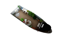 该作品为休闲居住游览观光所用,一层包含各种舱室,设有客厅沙龙、餐厅、厨房、卫生间、卧室等。自鲸鱼座首部向尾部4600mm为主卧室部分面积约为6.5m2,自主卧室3240mm处为厨卫走廊区面积约为6.8m2,期间设有厨房一个,卫生间一个,伸缩楼梯一副,自首部7830mm至尾部均为沙龙娱乐休闲区面积约为8.75m2。二层顶棚为可升降设计,面积约为11.3m2,设有空中花园、观景台、琴房、阳光房,保证了鲸鱼座的休闲娱乐性,同时保证空间的密闭性。底部区域设淡水舱、蓄电池舱、废弃物舱等。