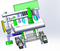 本项目主要针对的是山地,面临的是地形的问题,存在路况恶劣、存在一定的坡度,针对此问题做出相应对策:首选履带作为运动工具,履带牵引力大、重心低、附着系数大,具有良好的抵抗翻倾和下滑的坡地稳定性性,同时还具有转弯半径小的机动性、爬坡能力强的特点,刚好适用于山地。但为防止坡度下滑在车身上设置斜立柱来防止下滑,发动机采用四驱式。