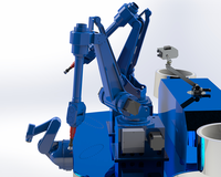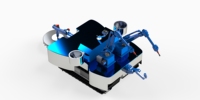 机器人共有四个机械臂,分别为两个上机械臂、前机械臂、后机械臂。两个六自由度的机械臂安装在在机器人的首部,机械臂通过旋转、伸展等动作可以实现相对于机器人前端270°全方位覆盖,最大限度的清理附着物,极大的提高了清洁效率;前机械臂可折叠、射出高速射流,用于清理不在船体上的部件,如螺旋桨;后机械臂用于控制圆形刷盘,用于对船体二次清洁。