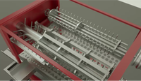 黄豆的学名为大豆,大豆为豆科大豆属一年生草本植物,产于我国。我国自古栽培,至今已有5000年的种植史;大豆富含异黄酮,可断绝癌细胞营养供应,含人体必需的8种氨基酸,多种维生素及多种微量元素,可降低血中胆固醇,预防高血压、冠心病、动肪硬化、可以美容等;目前,对大豆脱粒的操作还是以传统的钉齿式、弓齿式脱粒滚筒为主。但是这种传统的脱粒方式,靠脱粒齿冲击作物实现脱粒,容易造成脱粒损伤,导致大豆籽粒破损严重,使得脱粒后的大豆的品质严重下降,降低了企业的竞争力,无法适应现在生产中大批量、高效率的要求。分析现有的脱粒原理可知,揉搓式脱粒的性能较好,对大豆籽粒的损伤较小,且具有不缠草、效率高、脱净率高等优点;梳刷打击式的脱粒质量也较好,脱净率高和生产效率均较高。为此,利用两种脱粒原理进行优势互补,设计了低损伤双滚筒脱粒机。