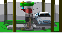 此次设计的新型升降横移式立体车库,在机构设计上有诸多创新,机构主要有升降横移机构、双车位旋转机构、齿形离合器机构等。采用了更节省空间与更加高效的停车方式。我们设计方案中,充分利用了地下空间,作为车辆的暂存场地。而地上空间部分最高6层,每层有对称双车位。两边是停车场地,中间是车辆旋转的巷道,这样在占地面积较小的情况下最大停车量可达24辆。