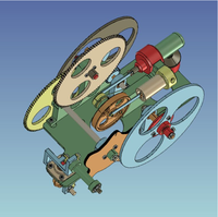 要把动力按准确的传动比传递到转向机构和驱动轮上。为了实现小车更远的行驶,更多的绕杆和精确绕杆,(障碍桩:直径为20mm,高为200mm),传动机构:传动比可靠、传递效率高、结构简单、重量轻的特点。保证传动链与执行件之间的严格传动比,尽量缩短传动链,减少传动件的个数,缩小传动误差,尽量减少能量的转换次数会有效地提高能量利用率。由热机输出轴直接驱动驱动轮,结构最简单、效率最高。因为新环S轨迹的存在,这就要求小车具有很大的传动比,为保证传动过程中能量不能损耗太多,我们可以用齿轮进行传动。齿轮的传动效率最高可达98%,可以很好的提高能量利用效率。小车在前进过程中,通过固定在轴上的齿轮旋转从而带动前方的“曲柄”齿轮旋转,通过连杆和转向机构连接。齿轮传动的一个主要作用是通过小轮带大轮实现固定传动比增速和减速,从而使驱动机构和转向机构协调配合。