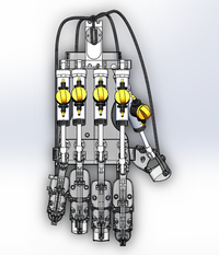 本项目为填补现阶段手部康复技术空缺,应用人体工学技术研制独特的体感数据采集结构。以数据库为基石,手部康复医学理论标准为参考,比较、查找算法为工具,研制一套逻辑式数据线形处理系统。参照手部外骨骼结构,设计主/被动两种康复训练系统,实现在进行手部康复运动同时监测康复过程,反馈康复程度的功能。解决因手部康复器类产品因技术方面空白而种类少、数量小、等造成的社会供需失衡问题。同时,基于本项目体感数据的采集与分析技术,亦可完成通过解析手语运动位姿数据,实现手语翻译功能。