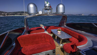尾部设有储物柜和侧尾箱,配有救生、冰箱、淡水箱等基本设备。