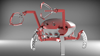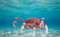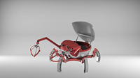 为应对此问题,我们的作品——蟹式海洋卫士也孕育而生。它能应对各种海洋垃圾——分为海面漂浮垃圾;海滩垃圾;海底垃圾。它依靠6只灵活的机械脚可以任意的行走在各种地形,头于足之间通过轴承连接,可以任意平转,通过系统的识别更好的完成其行动。机械内设计有一个统一的液压系统满足各各零件功能实行的需要。其中通过液压系统实现吸水和排水控制自身重量达到上升和下沉。蟹爪则是通过液压系统控制爪的张缩去夹取垃圾,暂时储存于蟹壳内。壳内通过液压系统和凸轮机构的结合使用实现其正常的开关。液压系统流通的液体均为海水,壳外接有太阳能板,在阴天及阳光不足时通过在“大脑”里的蓄电池发电。