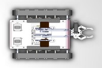 机械爪中两个齿轮一个为与电机连结的主动轮,另一个为从动轮,两齿轮相互配合使其同时张开,同时收缩,实现机械爪的抓取动作。速度通过直线双轴减速马达中,马达头部连接到机械结构中进行初步减速,减速比例达到1:50进行初步减速处理。