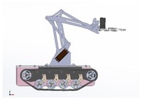 整个机械臂由两个舵机驱动,其中一个舵机带动一个齿轮,控制机械臂的转动,从而达到控制机械爪左右摆动的作用,另一个舵机通过带动一个齿轮,控制机械大臂的转动,实现机械爪的位置移动。