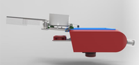 本装置能够自主定位,且具收集和聚集垃圾的装置,本装置摆臂连接处设计了半圆齿轮,转动一个方向就可以实现左右摆臂,简化了结构,尾部设计了推力引擎。