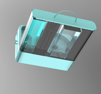 为了满足家庭的家庭宠物喂食情况下,我们设计了一款家庭式宠物自动喂食,可在手机上进行操控,增加了食物的安全以及家庭实时情况的观看,还有灭菌效果,使我们的生活多一份保障多一滴安全感。设计一个宠物自动喂食器要想实现自动控制、正常显示时间、温度测试和手机闹钟和喂食器声音吸引的功能就要细分到各个模块去实现。首先要具备一个主控系统控制整个电路正常工作可以由通过单片机担任这样的任务还要有显示时间的模块电路闹钟的设置可以通过按键随意更改电机控制门阀自动投放食物。电源电路的模块给整个电路供电喂食过程中伴随照明灯的点亮。我们使用了产品采用了新型的内置防阻转盘保障出粮顺畅无阻,喂食器顶端设计了内置的干燥盒保障了食物投放不卡顿以及食物干燥。内置防阻转盘保障出粮顺畅无阻,安装在存放食物和水源底部。双区域存量格,红色区域(系统指示灯可展示电量,食物存量,警报显示),黑白色区域(前后360度高清摄像头),中下黑色两点(内置转盘中心),白色浅蓝色区域(食物和水存放区,紫外线消毒区域以及加热区域,灰色两点(食物和水摆放区,可转动混合食物,均匀扩散区域,转动清洗等功能),右边黑色区域(声控系统,电机系统,温度传感器,芯片,蓝牙模块等存放区域) 中间黑色区域及下面绿点(功能显示屏,及其操作按钮)喂食器顶端设计了内置的干燥盒,放置活性炭等干燥剂,主要防止食物氧化以及污染。