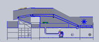 本产品采用皮带传动和链条传动的方式进行运作。原理简单、结构简洁,便于维修和日常维护。该产品由清洗烘干水槽、分拣模块两个部分组成,构成了分拣、清洗、烘干一体化的功能。