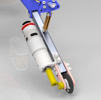 该行走部分采用轮式结构,可以有效的减少转向阻力。并且采用窄轮胎可以减少该行走部分的整体重量,而且窄轮胎可以充分的与管道曲面进行接触,使得行走的更稳定,避免了一些不必要的能量损失。该部分采用变径机构,通过丝杠螺母等零件,可以改变机器人的行走范围,使得它可以适应不同半径的管道。