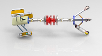 该部分采用履带形式,增加了对管内不同环境的适应能力并且增大了与管道的附着能力。该部分采用类似于汽车外倾角的结构,巧妙利用空间连杆结构的原理,使得履带与管径之间产生面接触而不是线接触。该部分通过丝杠螺母之间的配合以及在万能转向螺丝的配合下,使得履带可以适应于不同管径大小的管道,增加了它的实用性与万能性,为以后的探伤工作提供了便利。
