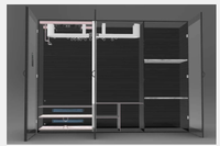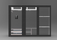 衣柜的框架是由木材构成搭建,衣柜主要分为三个储物空间,衣柜的门采用透明防爆玻璃门,向外打开方式,门上安装有电子控制屏幕,用来控制内置烘干系统,和相关功能,衣柜门缝隙安装有密封条起到密封的作用。第一个空间是衣物烘干区,下层部分是一个鞋子摆放区,上层是衣物悬挂区。第二个空间是日常生活使用区,主要作用是放置日常生活所使用的衣物,还可以折叠分开放置不同衣物。第三个空间是密封区,密封区主要是放置另一个季度的衣服保持密封状态,防止蚊虫进入和隔绝外面的湿气。在第一和第二个空间之间有导轨进行相通,用于烘干的衣物传送。