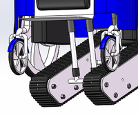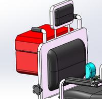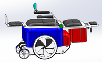 在将要到达楼梯顶部时,液压回路将动力传递到支撑架上,使支撑架上的两个支撑轮下降,保持轮椅缓慢平稳地恢复到初始状态。接着将电磁离合器分离,在行走轮的作用下,轮椅成功抵达楼梯顶部。轮椅扶手上有按钮,操纵简单,使用方便。