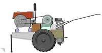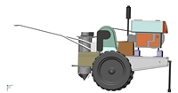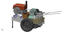 本装置主要由两个独立的结构组成:运动机构和任务执行机构。运动机构主要负责提供机器整体向前的动力。任务执行机构主要负责梭梭树种植,它主要完成旋挖下苗和固土任务。本项目的设计创新点在于:自动化可开合式瓣状尖端的钻头设计,旋挖任务结束时无需将钻头提出地面即可完成下苗。提高了梭梭树苗的栽种效率,改善我们的沙漠环境。