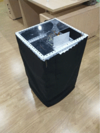该装置是一款家用级的单投放口式的智能垃圾桶,主要由微型伺服电机、红外传感器、视觉系统、单片机、等组成。主要特点为结构简单、低能耗,可以实现自动分类厨余垃圾、可回收垃圾、有害垃圾、其它等四种类型垃圾并按区间不同存放,系统还具有垃圾种类提示、满载提示等。功能的具体实现如下:当使用者把垃圾投入投放口后,传感装置自动识别并确认垃圾信息,显示屏幕会显示此垃圾的种类,之后垃圾会自动滑落至属于自己种类的垃圾桶内。当垃圾桶内的垃圾超过桶容积的一定值时,屏幕上会出现“XX垃圾已满”的字样,提醒用户移除。
