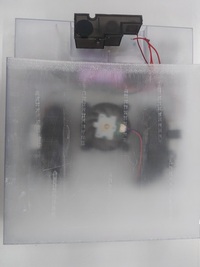 通过单片机控制行走机构电机的正反转及暂停,实现机器人的移动。控制攀爬风机的转动,应用我们设计的型腔进行回流产生内外压差,利用负压形成的吸力保持机器人吸附在墙上完成行走除污的工作,同时加上螺旋桨的升力提高机器人爬墙行走的稳定性。在行走移动的同时,机身上部的喷雾装置雾化喷出适量的清洁液,再由机身下部的清洁刷和具有吸水性能的清洁布实现前者溶解刮擦油污,后者清洁干燥墙面,还有我们的硅胶刮条和硅藻泥海绵槽可以有效的回收残余的油污。一万毫安容量的电池能够轻松维持我们的小精灵两小时的工作时间,这样我们就可以实现快速,便捷地清理厨房油污,解放人们的双手,畅享快乐厨房生活。