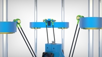 本项目研究主要采用鱼眼轴承设计,通过拉伸一连杆结构以三个运动方向合成x轴、y轴。通过锁定热床自由度,增加打印喷头自由度以提高打印稳定性与精度。