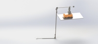 该项目共由300多个零件组成,机械设计部分我们采用绗架式的可折叠装置,通过设置两个电动伸缩杆完成两个折叠臂的折叠动作,通过两个舵机完成机械臂的旋转动作,通过一个滚珠丝杆和一个电动伸缩杆完成两个部分的伸缩动作。当机械臂开始工作时,各部分分步驱动,使得机械臂全部展开,到达指定位置,摄像头开始工作。机器人的底盘由两个电机驱动以及四个轮子组成,可以通过两个电机实现前进后退转弯等运动轨迹。单片机控制方面选择使用STM32单片机,控制舵机的方法选择使用PWM库函数调节,通过控制信号占空比控制舵机的转动角度。图像传输部分,使用wifi图传系统,可使用舵机控制摄像头的角度,获取不同的图像。当工作结束之后,机械臂将折叠收回。