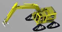 一直以来,常规挖掘机的功能比较单一,作业空间有限,受环境因素影响极大,我们希望挖掘机可以在较为恶劣的条件下工作,为此我们团队制作了山地挖掘机;它的四个履带不仅可以使其运动更加稳定还可以绕轴做旋转不同的角度,以适应其在复杂地形的工作。