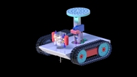 免耕移栽机结构主要由四部分结构组成,分别为下苗机构、种植机构、覆土机构、运动机构组成。对于种植机构,综合考虑了以往耕地机设计对于泥土的破坏,采用了旋转挖土机构,在减少沙漠环境泥土松动加剧的同时,保护了水分、营养的减少,喷射化肥与水,加大了柠条的存活率。同时利用齿轮传动,可以根据不同地面高度的需要随时调整插苗深度。对于下苗机构,查资料充分考虑3株苗为标准种植等特性,以轮盘等机械结构控速转动下料。对于运动机构,采用履带,能够适应更加复杂的地形。对于覆土机构,由于在种植过程中对土移动较小,据此设计移动了对土壤破坏较小覆土机构。
