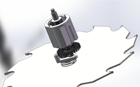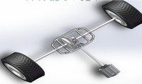 前轮发动机带动齿轮,齿轮啮合带动履带,在山区等恶劣交通环境下,伐木机具备更优良的抓地力。后轮通过输出轴上的齿轮带动输出轴上的齿轮。机械臂通过液压泵,能够有足够的动力搬动树木。电锯通过电机齿轮啮合转动。在保护伐木工人安全的前提下,提高了工作效率。