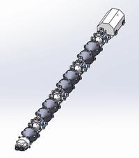 这款多功能两栖搜救蛇与目前市面上所出现的所有仿真蛇有所不同,该产品是在目前市面上所出现的仿真蛇的基础上,在仿真蛇的身体结构上添加了夜视摄像头、热成像仪、微生物质储存仓、无线电装置、气体检测装置等侦察、救援装置,其主要功能均由内部的STC89C52单片机进行控制。使其能够适用于条件恶劣而又要求高可靠性的环境,如在有辐射、有粉尘、有毒环境下执行侦察任务,在地震、塌方及火灾后的废墟中执行侦察搜救任务。同时,这款多功能两栖仿真蛇,不仅可以在陆地上执行任务,而且还能在水中执行任务。整体具有设计简洁、结构合理、功能多样化的特点。