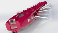 通过实验设计了一个模仿海扁虫运动方式仿生的水下航行装置,将传统的水下机器人螺旋桨以及水下仿生鱼类机器人摆动式的推进方式改为模仿海扁虫鳍面波动式的推进方式,提高了装置在水下的运行效率以及整体的稳定性。除此之外,本装置的主体龙骨模仿脊椎动物脊椎的结构,整体由多个可以灵活活动的关节组成,然后用钢丝绳进行绳驱动,控制整体的上下弯曲,使得本装置可以适应多种复杂的地形,极大地提高了装置的灵活性。综上,本作品致力于设计一种采用模仿海扁虫运动方式、主体龙骨模仿脊椎动物弯曲方式的、可以灵活平稳、高效运转的水下航行装置。