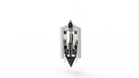 三叶爪式取土挖穴器设计为三块上端大、下端小的三角形状叶片,,有利于挖坑时时挖头顺利地刺入土壤。工作时挖头沿导轨向下滑动以张开的姿态竖直向下入土,同时对土壤产生剪切作用,在达到一定入土深度后,在伸缩电机作用下各叶片沿滑槽移动,挖头闭合器闭合,使土壤产生形变而汇集在挖头内部,随后沿导轨向上以闭合姿态竖直出土,完成取土的同时形成孔穴,挖头随整机运行移动至成型孔穴前方,再在伸缩电机的作用下向外打开完成排土,随后复位完成整个挖坑成穴过程。