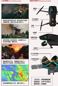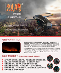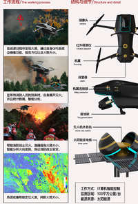 在遇到已经不可控的大火时,“烈鹰”可以在火灾上方根据自身配置的火源智能分析系统,分析风向,山中地形,火场温度,以及摄像头可以实时传输火场画面,智能做出判断,将信息传输到地面,一方面可以帮助消防战士灭火,另一方面智能分析火源走势,可以为消防战士保驾护航,避免人员伤亡。