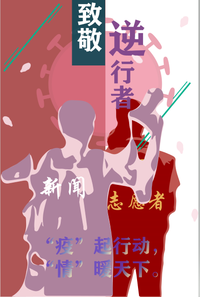 新冠疫情带来的不只是灾难还有世间温情,在疫情背后有许多负重前行的逆行者,有医务人员,有警察消防员,有外卖快递员还有工人。即便是不同的职业,但是大家都用自己的力量与疫情对抗,他们每个人但是值得我们尊重和致敬的。我的这一系列作品,就是在感激和致敬他们每一位在危难时挺身而出的英雄们。一身服装代表不同的人,不同的职业。新冠的形状摆在面前,代表着他们每个人面对新冠疫情临危不惧,在这场抗争中,医生护士是一线人员,付出了时间和精力甚至生命,;警察消防人员他们维护秩序,调节民心,坚守防线也做了许多奉献;新闻工作者们对新冠实时报道,冒着危险进行拍摄,将真实一面展示给人们;志愿者们无偿进行服务,或在医院或在小区。他们都是逆行者都值得我们敬重。我用我的作品向他们致敬。